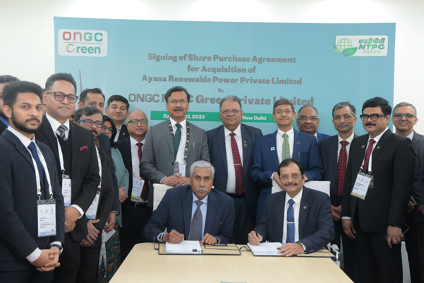 On 28th March 2025, ONGC NTPC Green Private Limited (ONGPL), a 50:50 Joint Venture Company of NTPC Green Energy Limited and ONGC Green Limited, has completed the acquisition of 100% equity stake in Ayana Renewable Power Private Limited. Share Purchase Agreement (SPA) was signed on 12th February 2025.